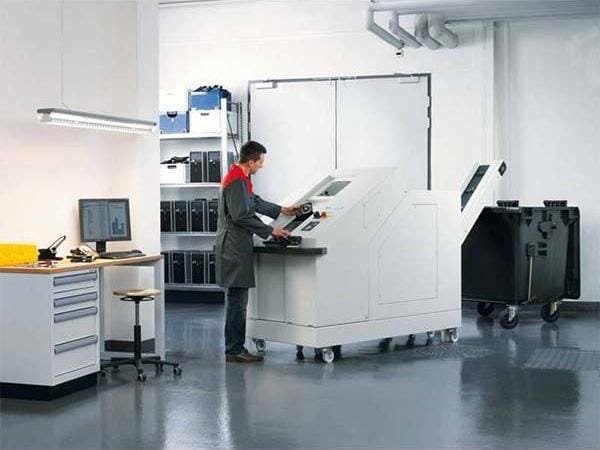 Secure destruction of data carriers is difficult without the right experts and tools for the job. HB handles the whole process, including issuing the required certificates. You no longer have to worry about it.